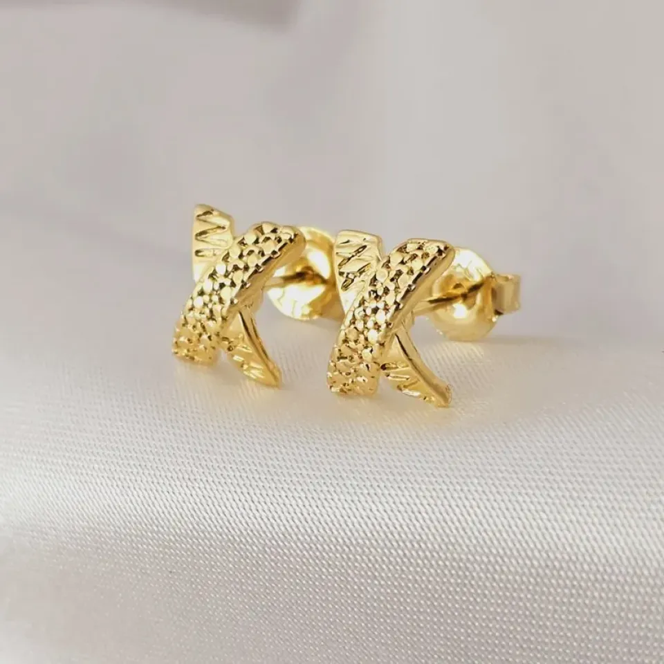Brinco folha, banhado a ouro, medindo 1,8x...